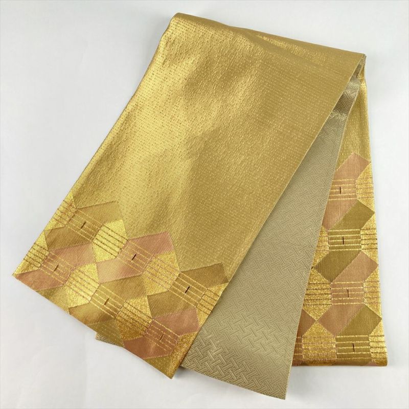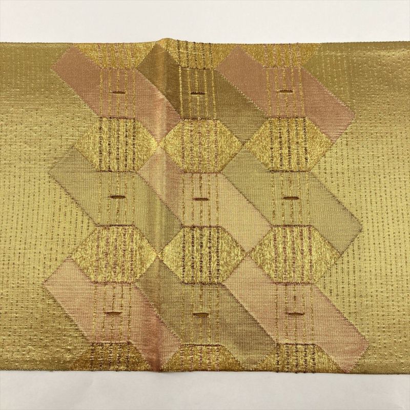 洗練された金色をベースに、抽象柄をあしらったモダンな袋帯です。