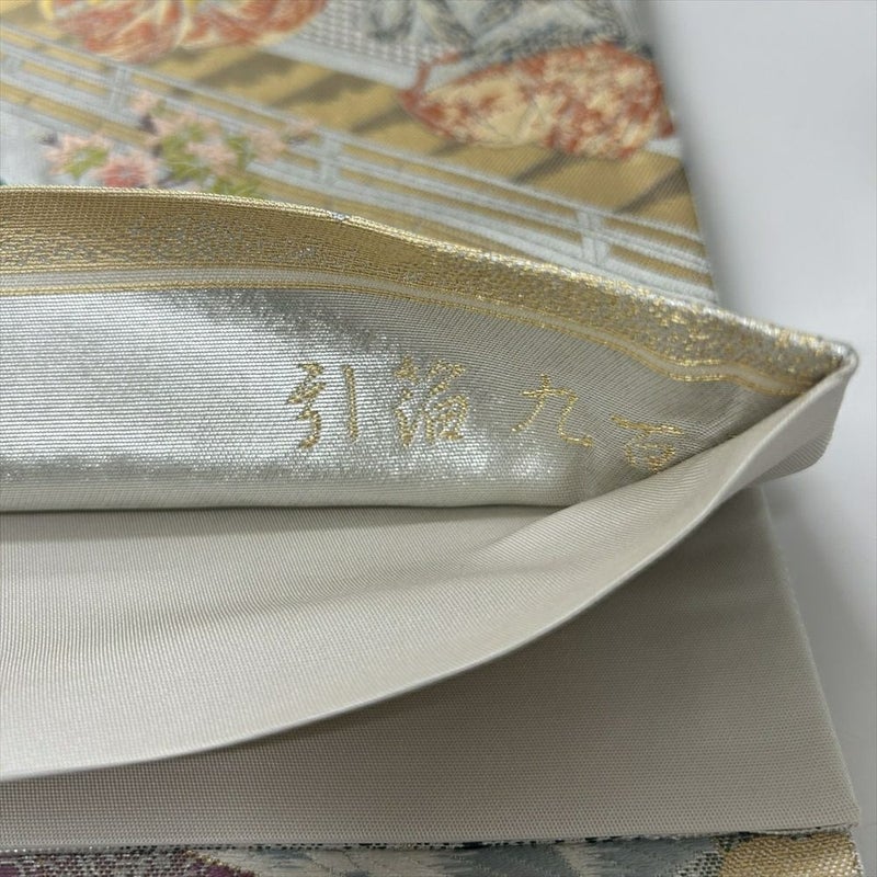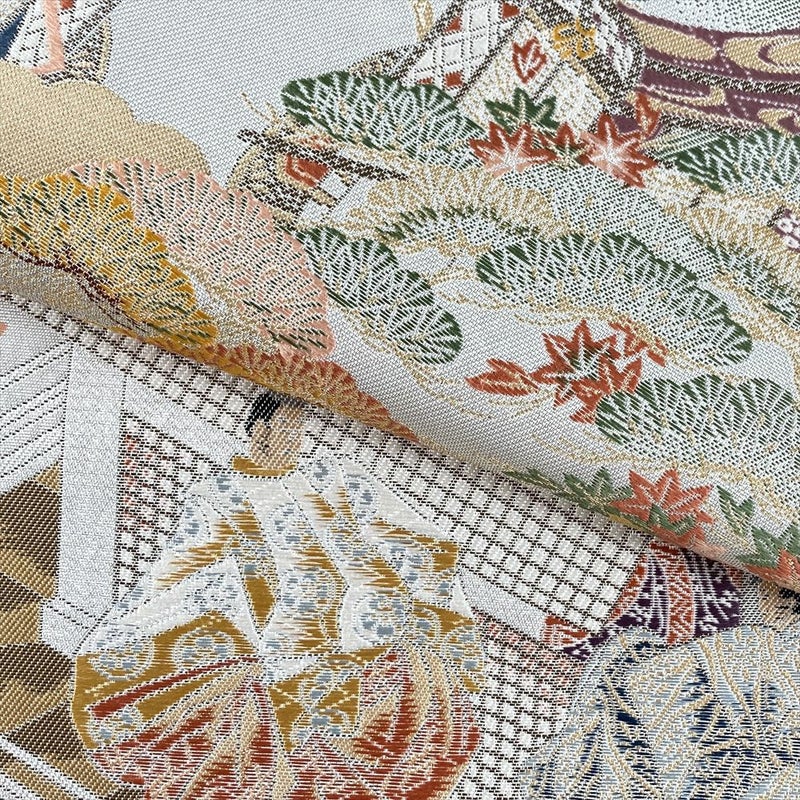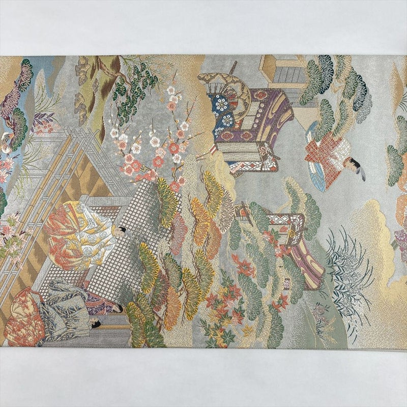 奥ゆかしい金銀の煌めきに、王朝絵巻の世界が広がる袋帯です。