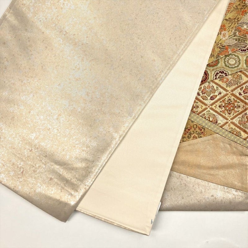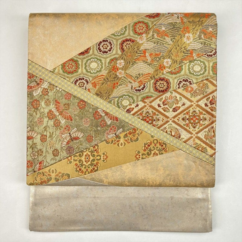 (中古)袋帯 金 銀 セミフォーマル 六通 切箔 色糸 切り嵌め 華文 吉祥文 花蝶