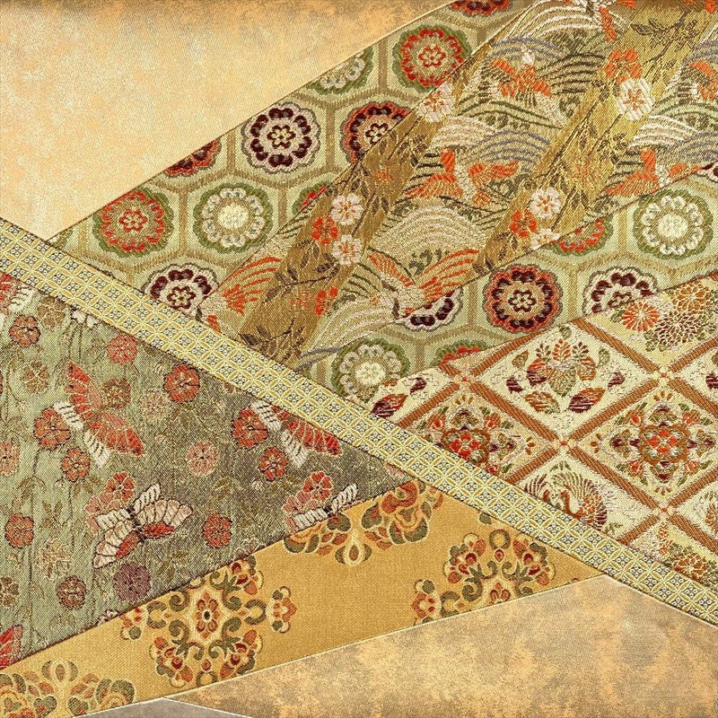 【色柄】金 銀 セミフォーマル 切り嵌め 華文 吉祥文 花蝶 切箔 色糸 六通