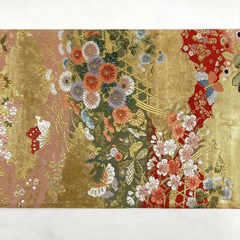 【色柄】金 フォーマル 雲取り 花蝶 織り 六通