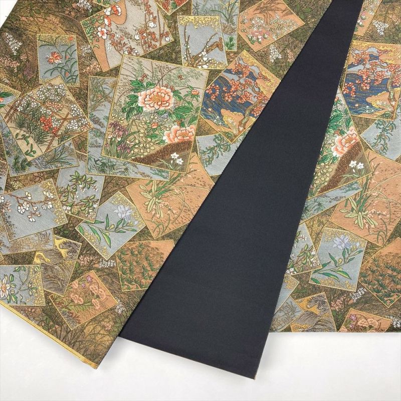 【色柄】錆色 フォーマル セミフォーマル 御帳 四季花 切箔 金糸 色糸 六通