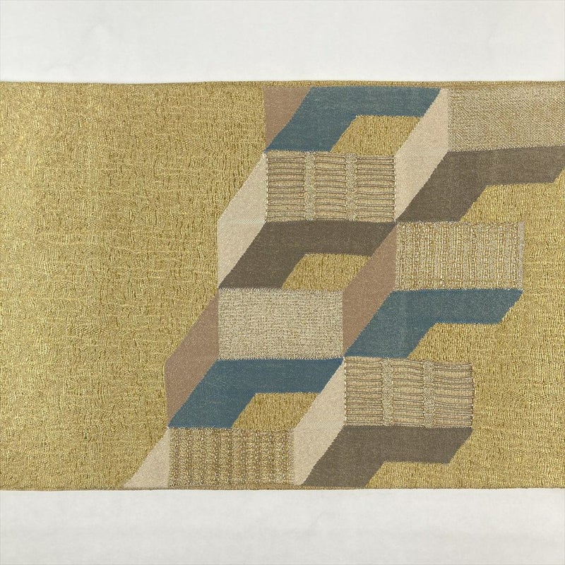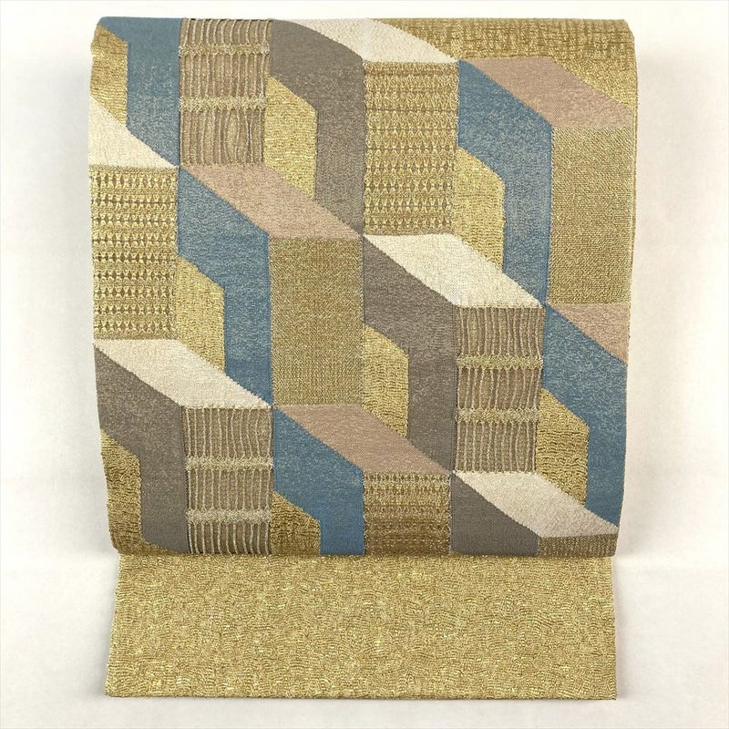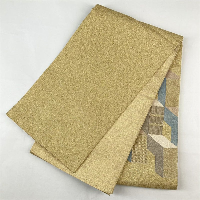 (中古)袋帯 金色 セミフォーマル 六通 太箔 金糸 銀糸 抽象柄 絹