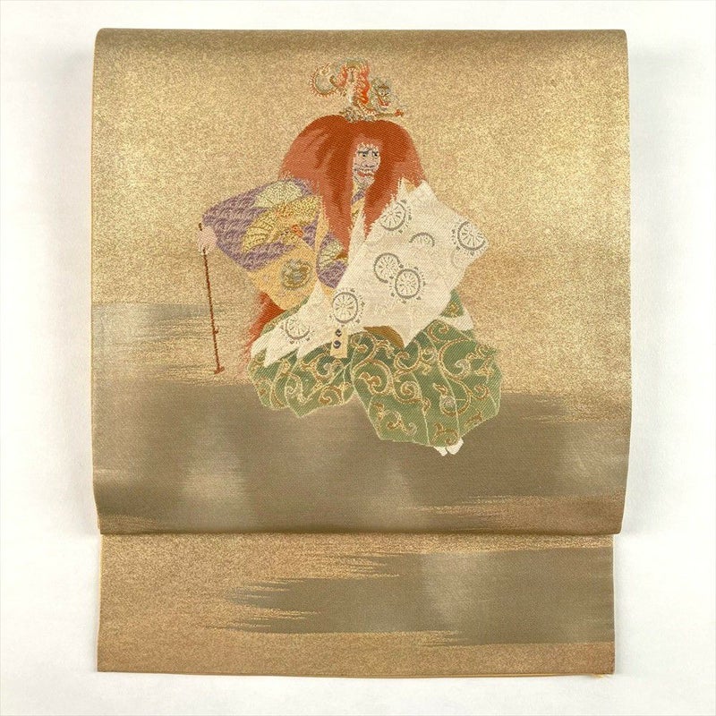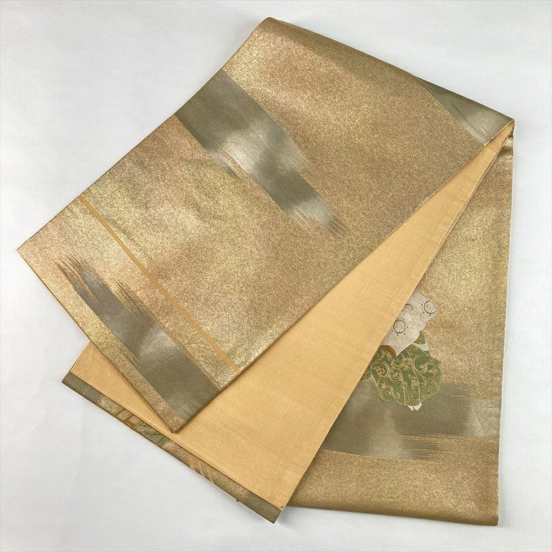 (中古)袋帯 金 セミフォーマル フォーマル 六通 織り 能 装束 舞台 絹