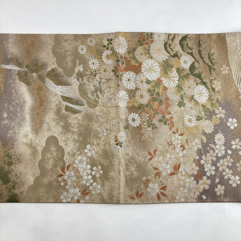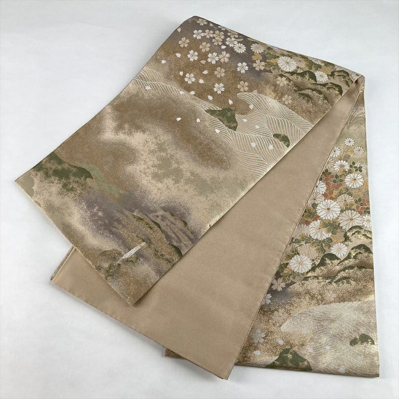 (中古)袋帯 金 フォーマル 六通 金糸 桜 菊 萩 薄 絹