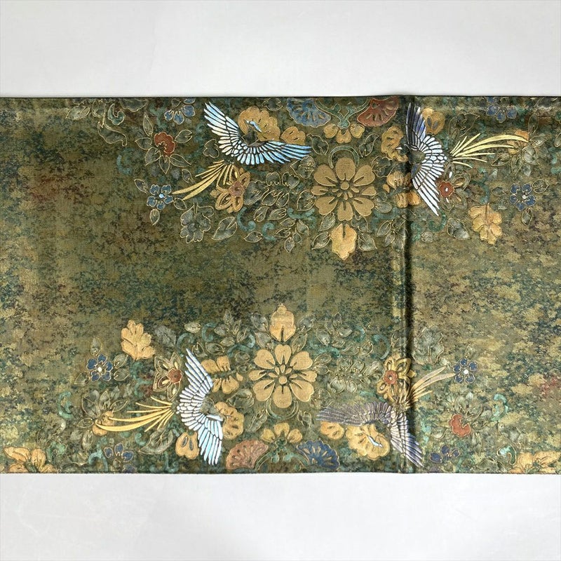 (中古)袋帯 緑 金 切箔 金彩 フォーマル セミフォーマル 六通 花鳥 華文 天平文 オリエンタル