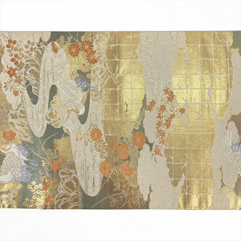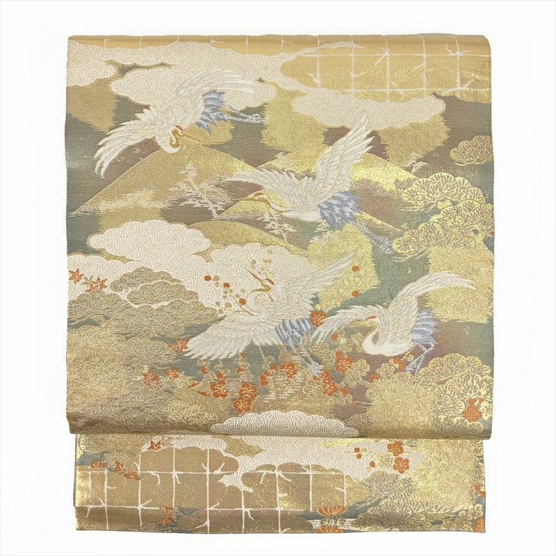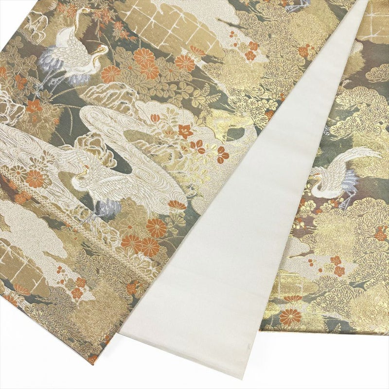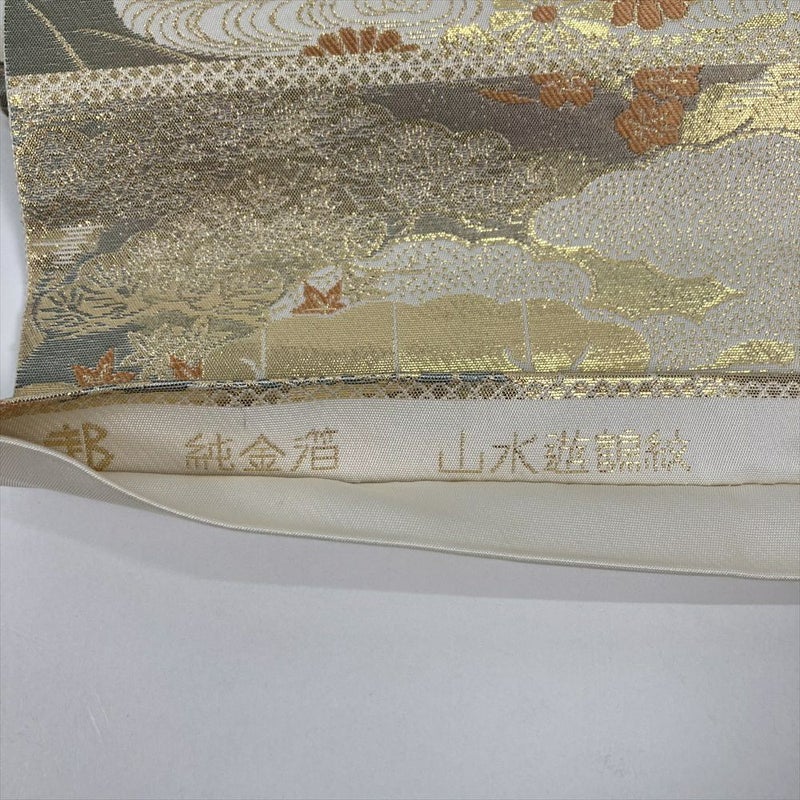 (中古)袋帯 金地 フォーマル 六通 純金箔 山水遊鶴紋