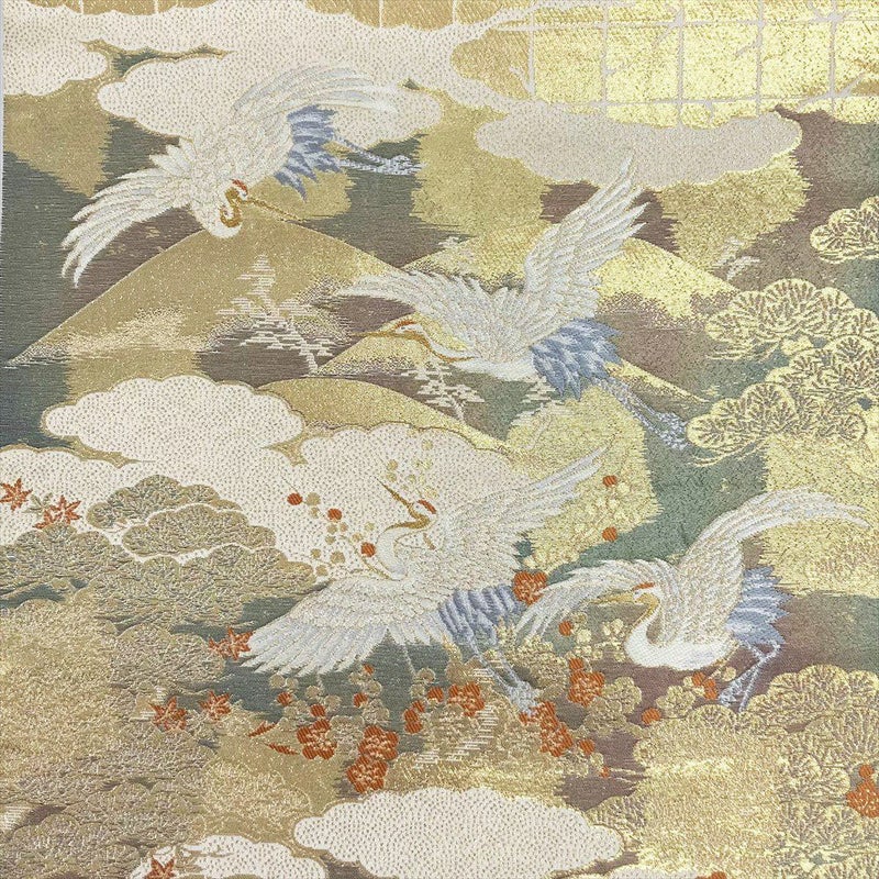 煌びやかな金地に鶴が舞う、オーソドックスなデザインは、フォーマルシーンにぴったりです。使用感がほとんどなく、こちらの帯はおススメの一品となっております。
