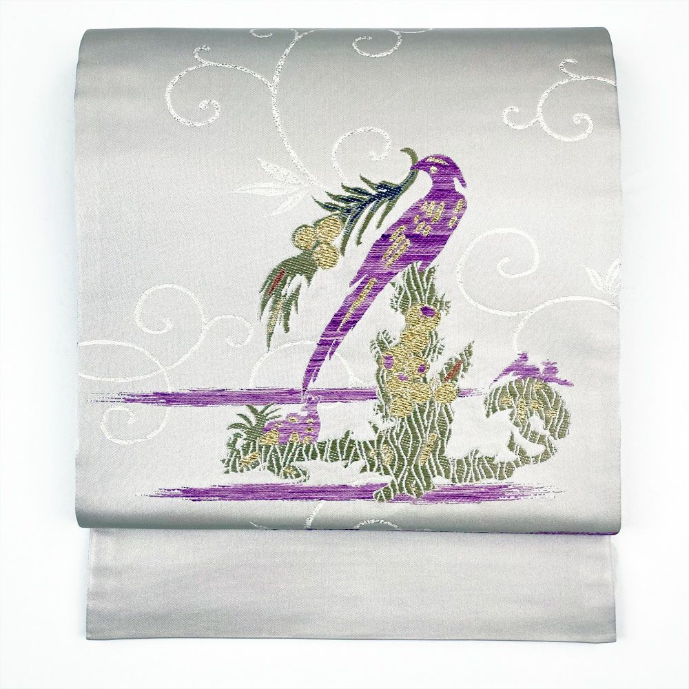 (中古)袋帯 白 セミフォーマル カジュアル 鳥 貝紫