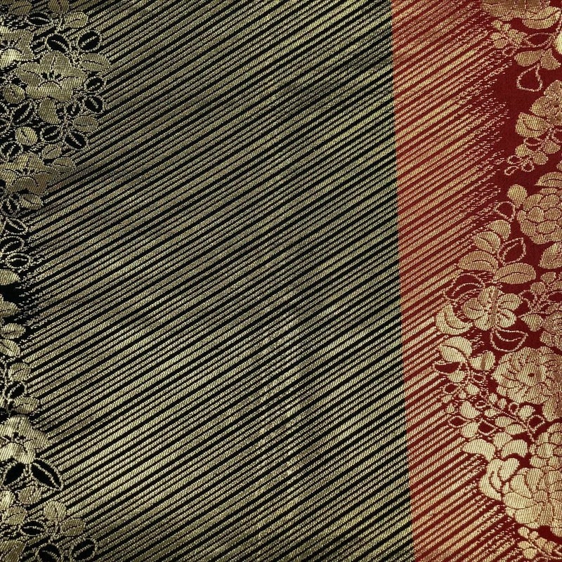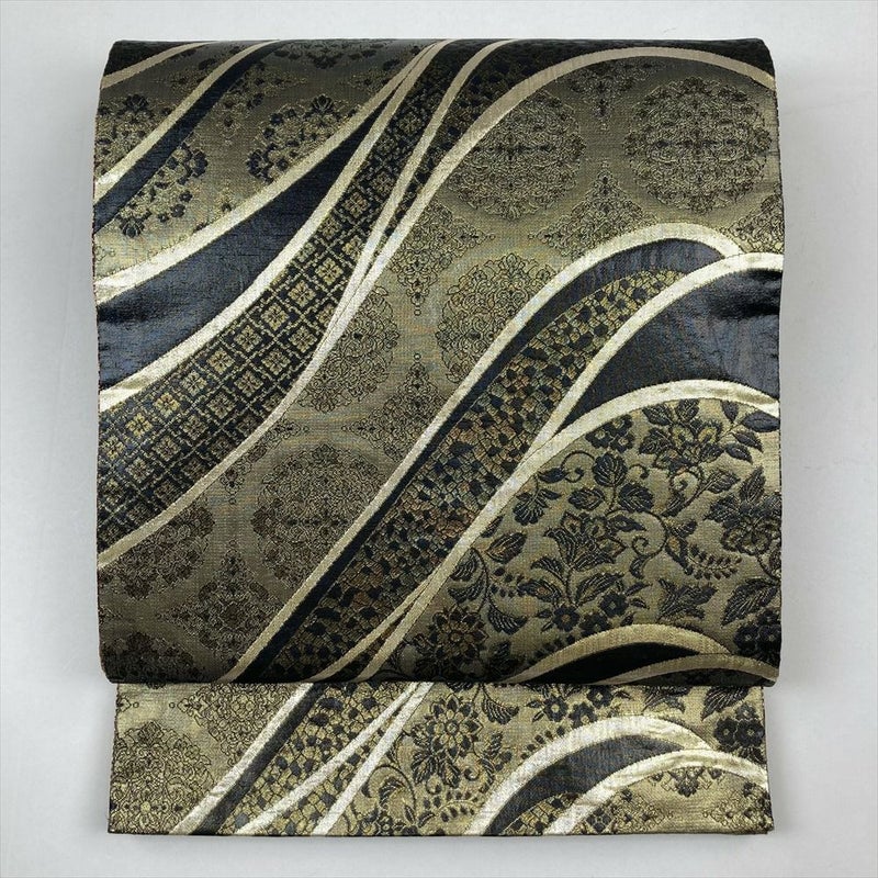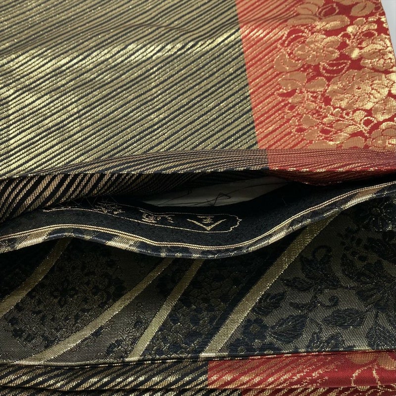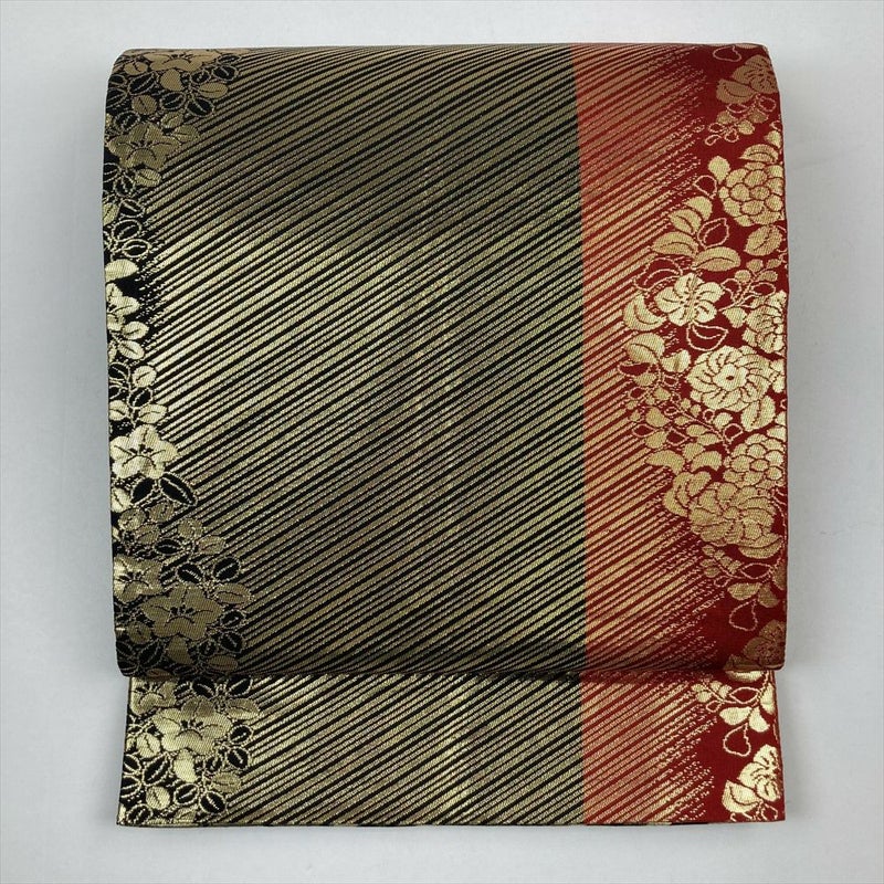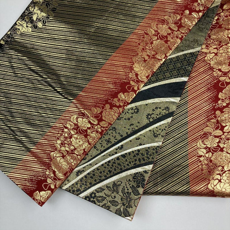 フォーマル、セミフォーマル向きの帯になります。成人式・結婚式や披露宴・パーティーなどフォーマルのお席にお使いいただけます。たれ先に金通袋帯の縫い取りあり。たれ先にほつれがあります。
