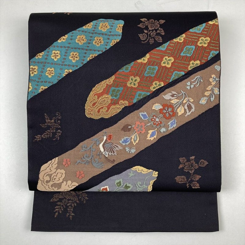 こちらの帯は、正倉院の宝物を思わせる柄に、高貴な紫の地色、手にしっくりくる柔らかい帯地が特徴です。セミフォーマル、カジュアルシーン向きです。お好きなコーディネートをお楽しみくださいませ。たれ裏地に文字あり。