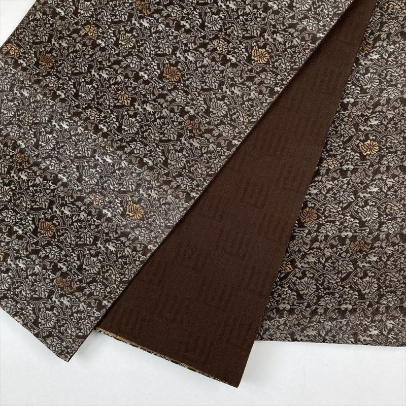 【色柄】焦げ茶 フォーマル セミフォーマル 全通 銀糸 横段 蔓花 オリエタル