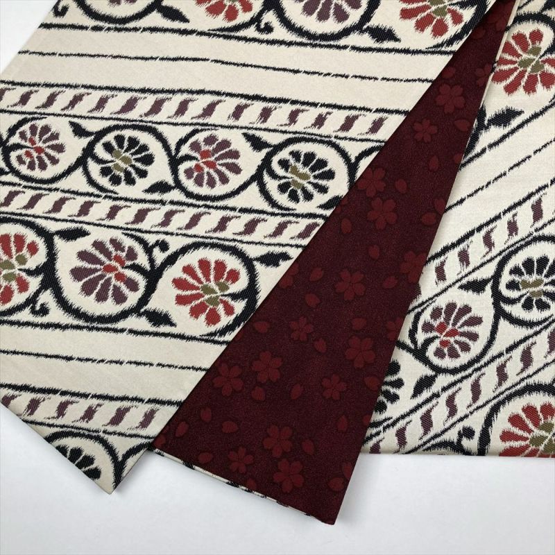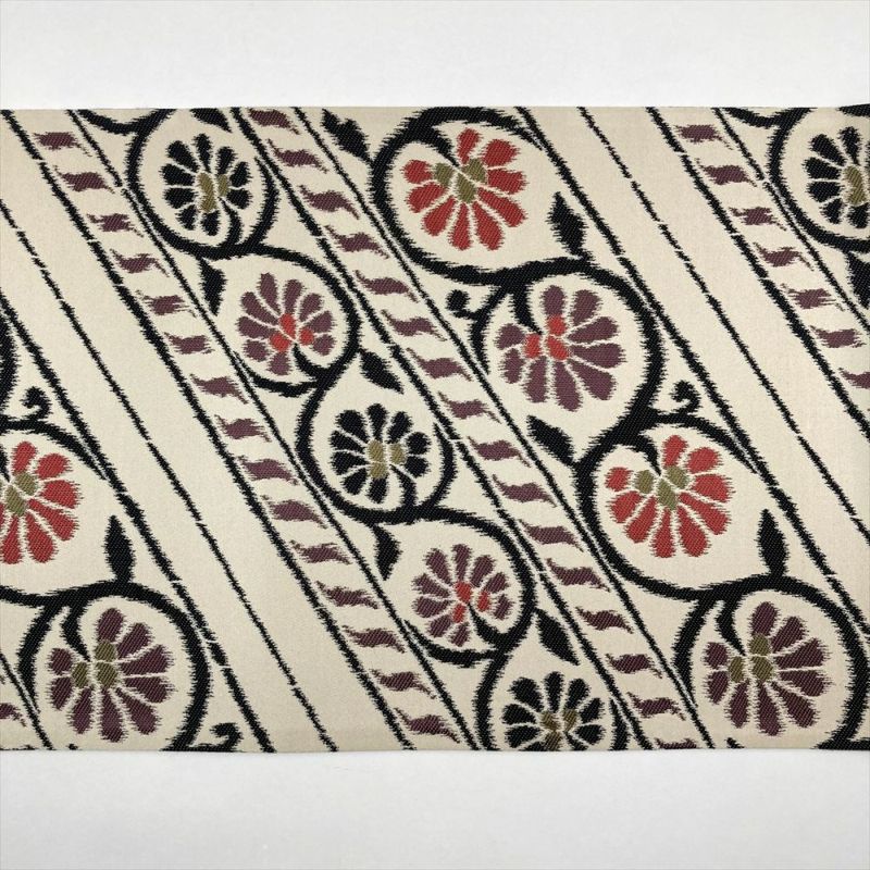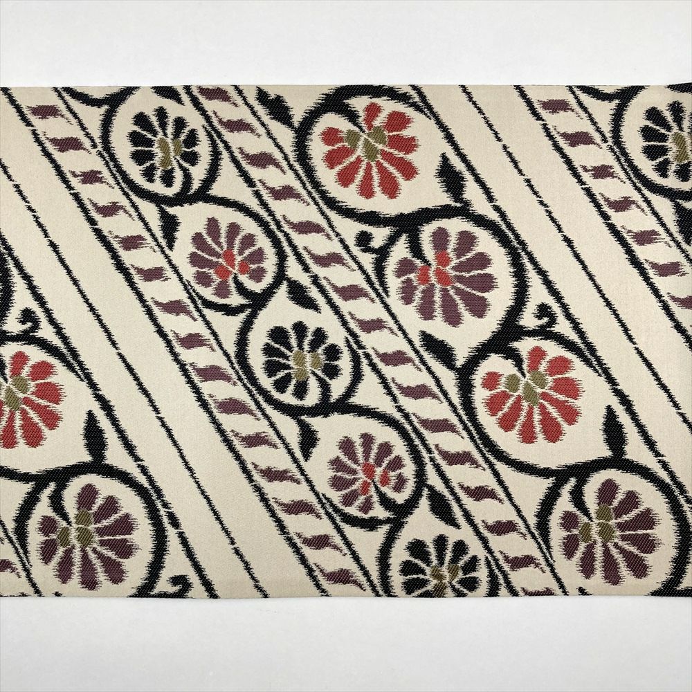 【色柄】生成り カジュアル ヴィンテージ 六通 斜め取り 蔓 花