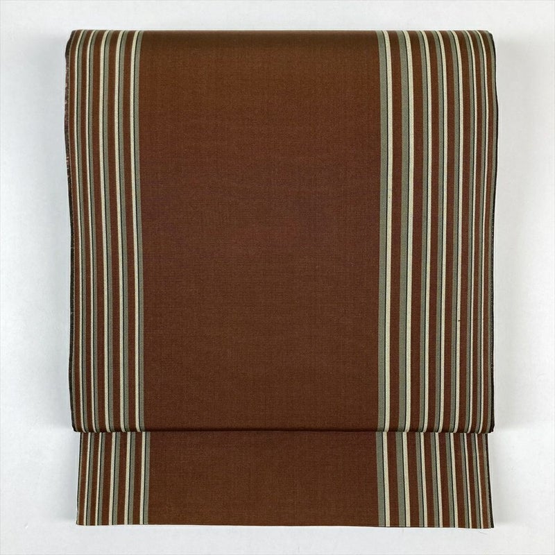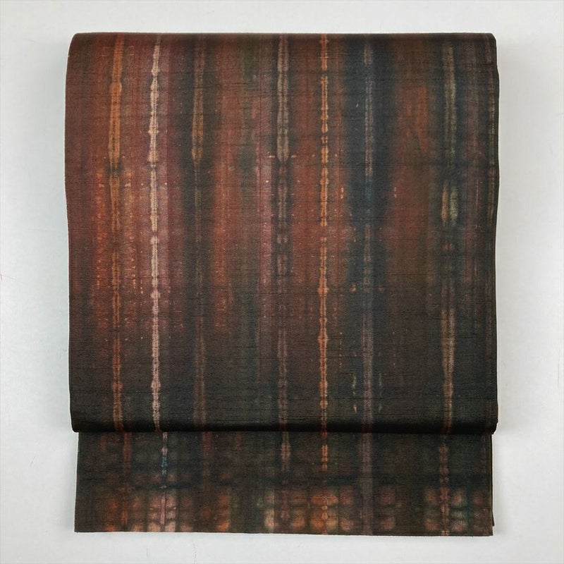 (中古)袋帯 茶 カジュアル リバーシブル 全通 絞り染め
