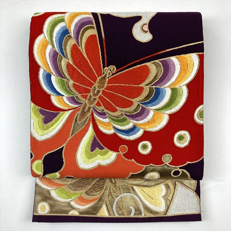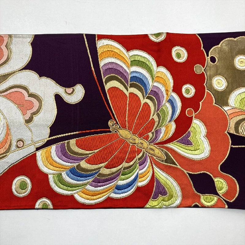 (中古)振袖用袋帯 紫 フォーマル 六通 金糸 蝶