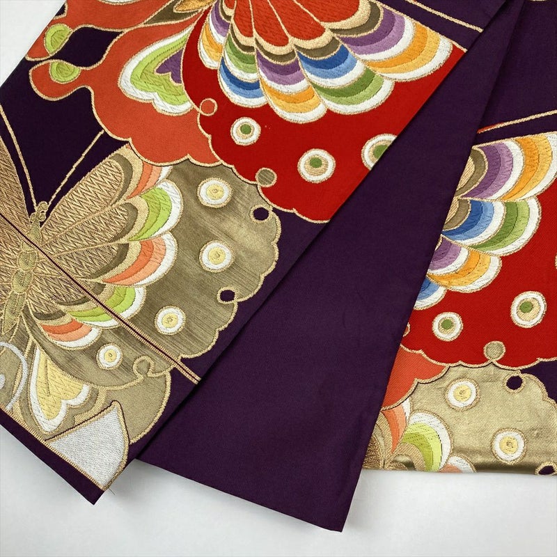 【色柄】紫 フォーマル 六通 金糸 蝶