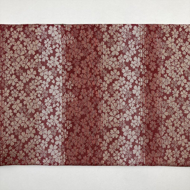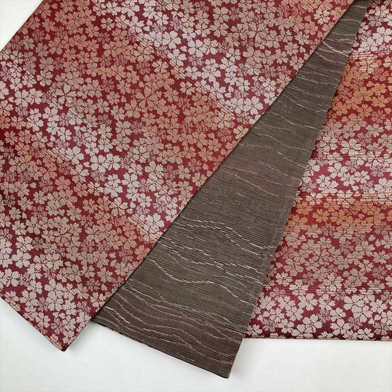 (中古)袋帯 赤 カジュアル リバーシブル 全通 横段 桜 波
