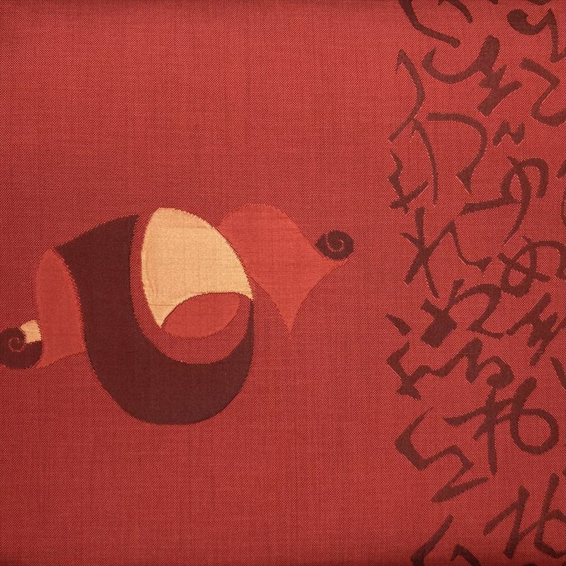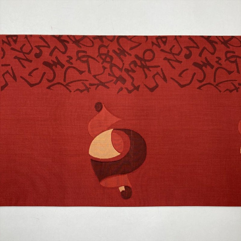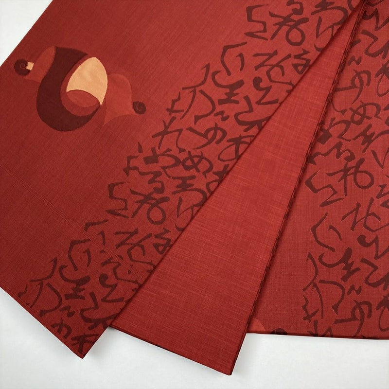 【色柄】赤 カジュアル 六通 文字 反物柄