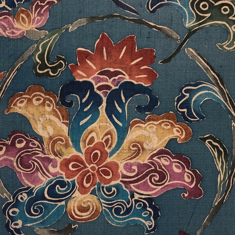 伸び行く蔓に咲く花の生命力を感じます。美しいカラーとデザインの型絵染めの帯は着姿のポイントになります。カジュアルシーンにおすすめいたします。お好きなコーディネートをお楽しみくださいませ。