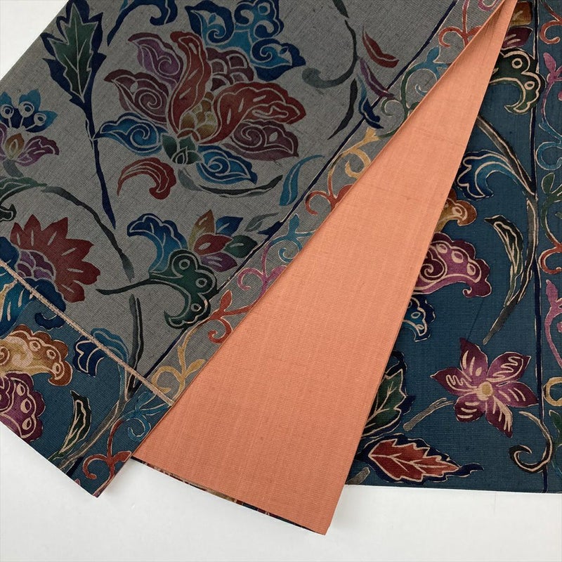 【色柄】紺 カジュアル 六通 型絵染め ぼかし染め 蔓花 オリエンタル