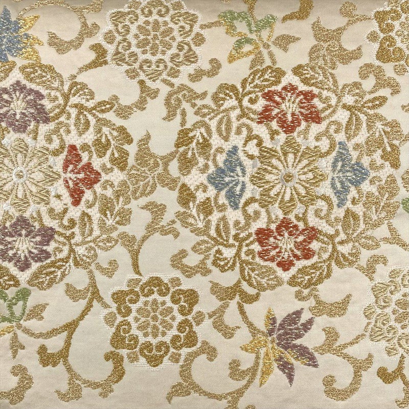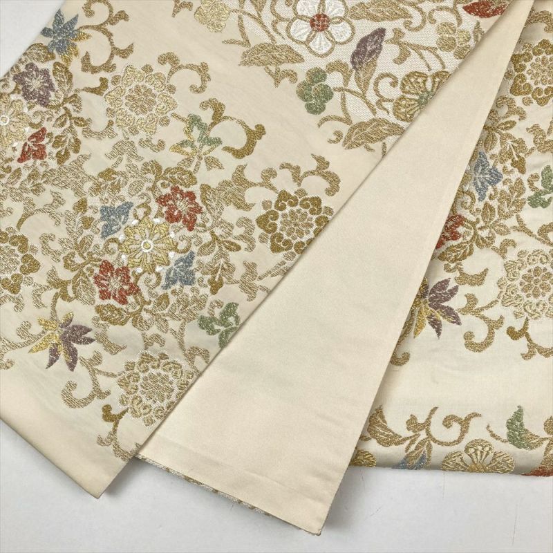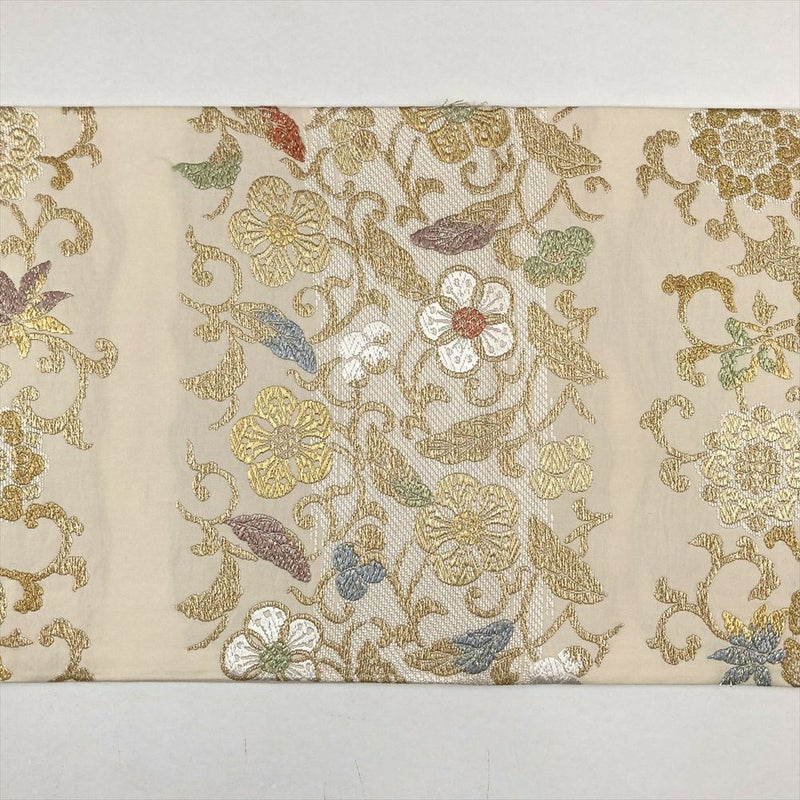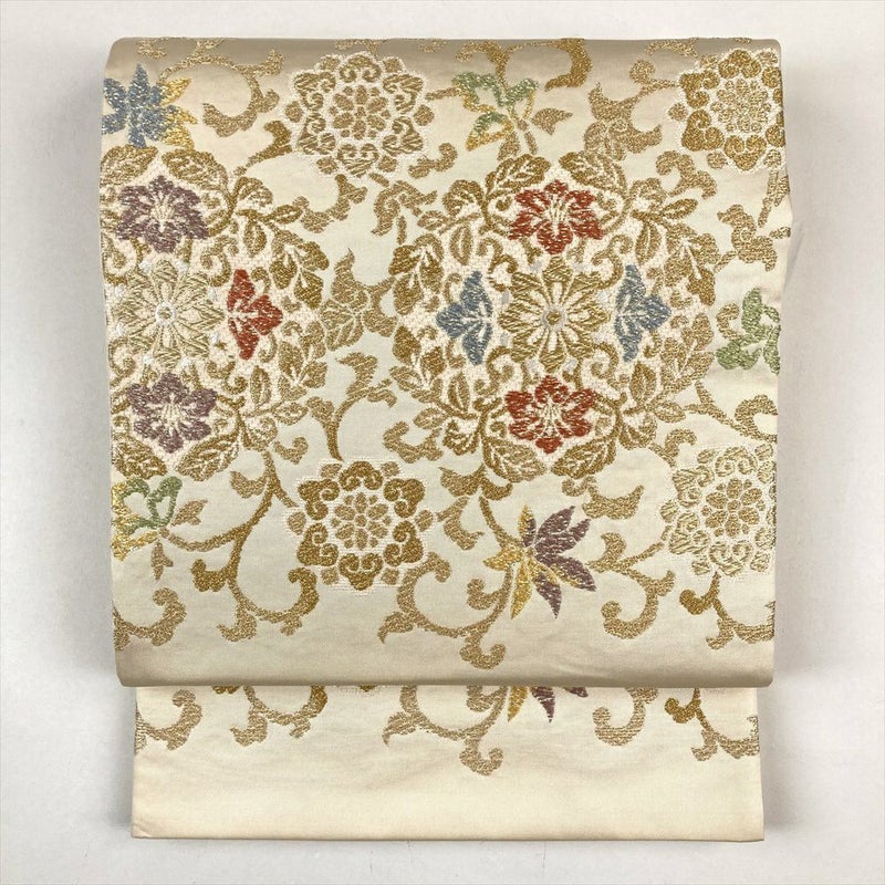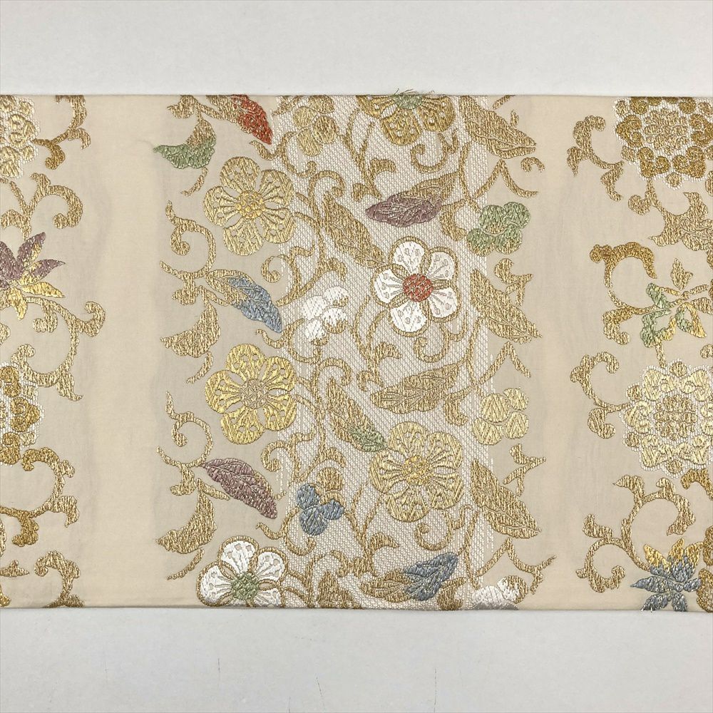 (中古)袋帯 クリーム フォーマル セミフォーマル 六通 金糸 色糸 華文 蔓花 オリエンタル