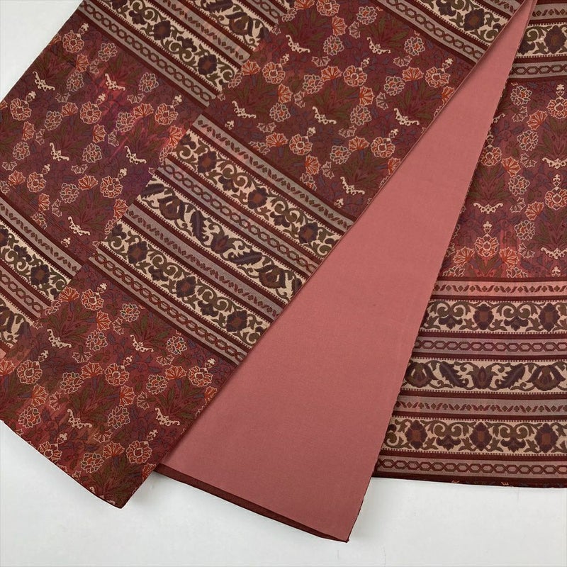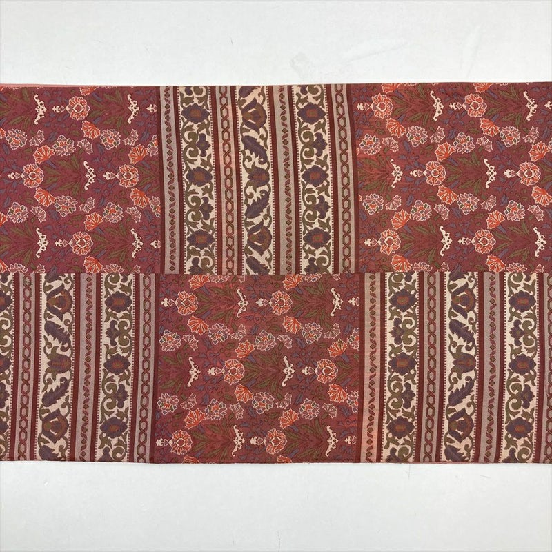【色柄】濃赤 カジュアル 六通 変わり市松 花 蔓葉 オリエンタル