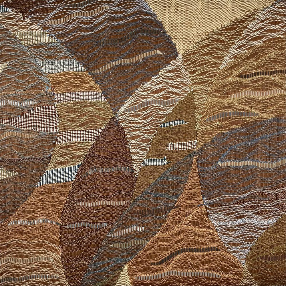 【色柄】茶 カジュアル リバーシブル 六通 透かし織り 丸に波
