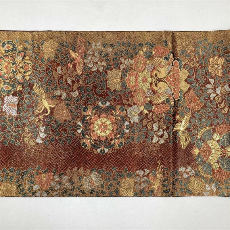 (中古)袋帯 臙脂 フォーマル セミフォーマル 六通 切箔 鳳凰 華文 蔓花 オリエンタル