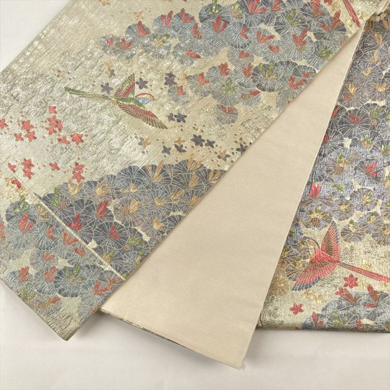 【色柄】銀 セミフォーマル 六通 金糸 銀糸 色糸 鳥 花