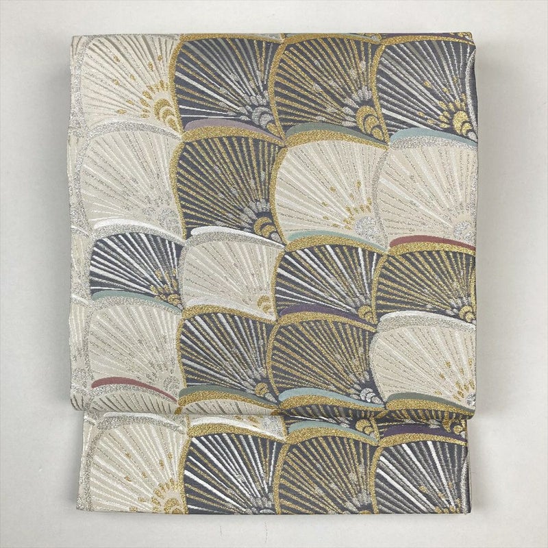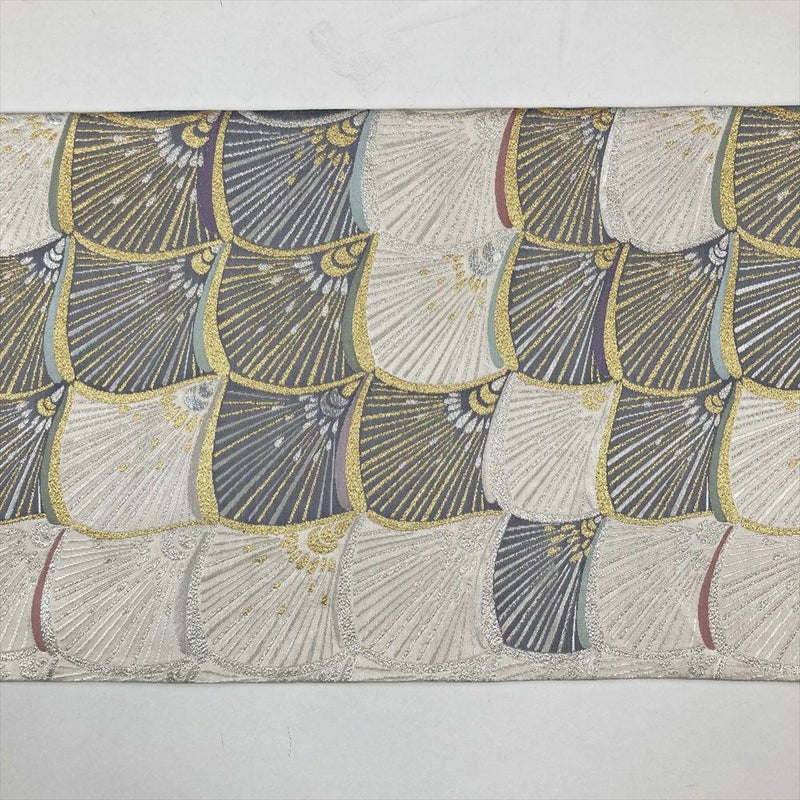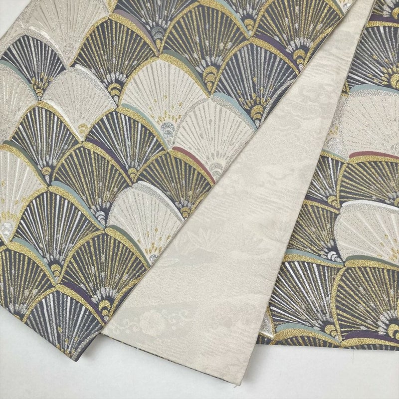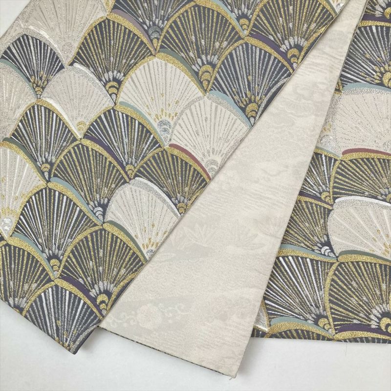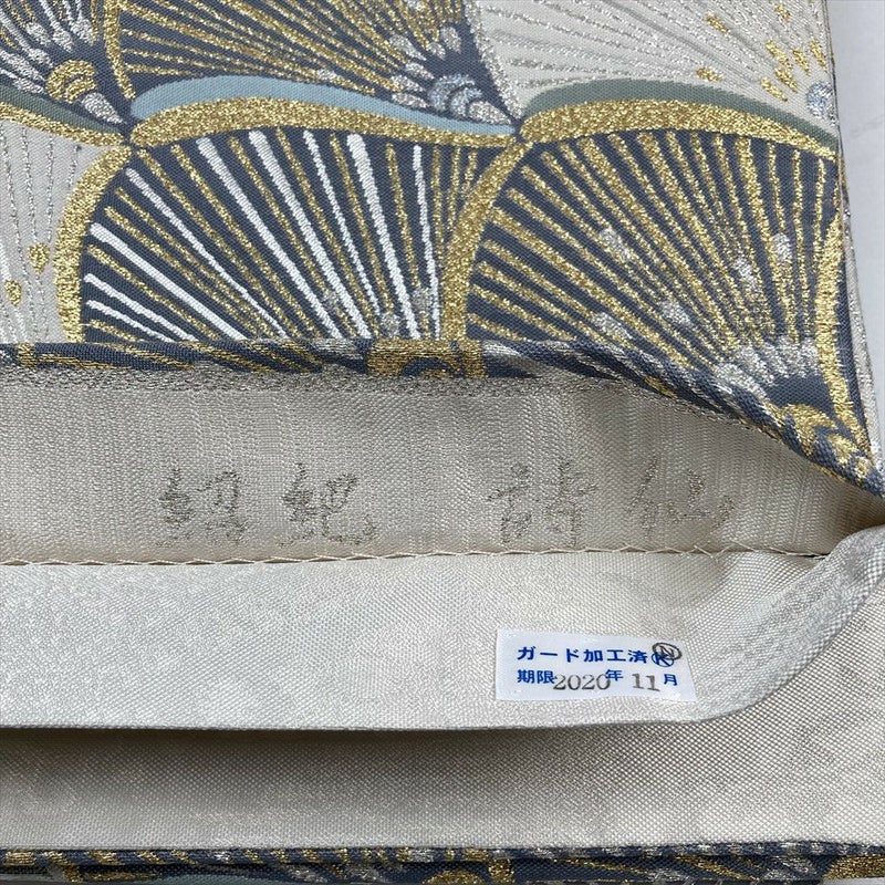 (中古)振袖用袋帯 銀 フォーマル セミフォーマル 六通 金糸 銀糸 色糸 変わり青海波 若松