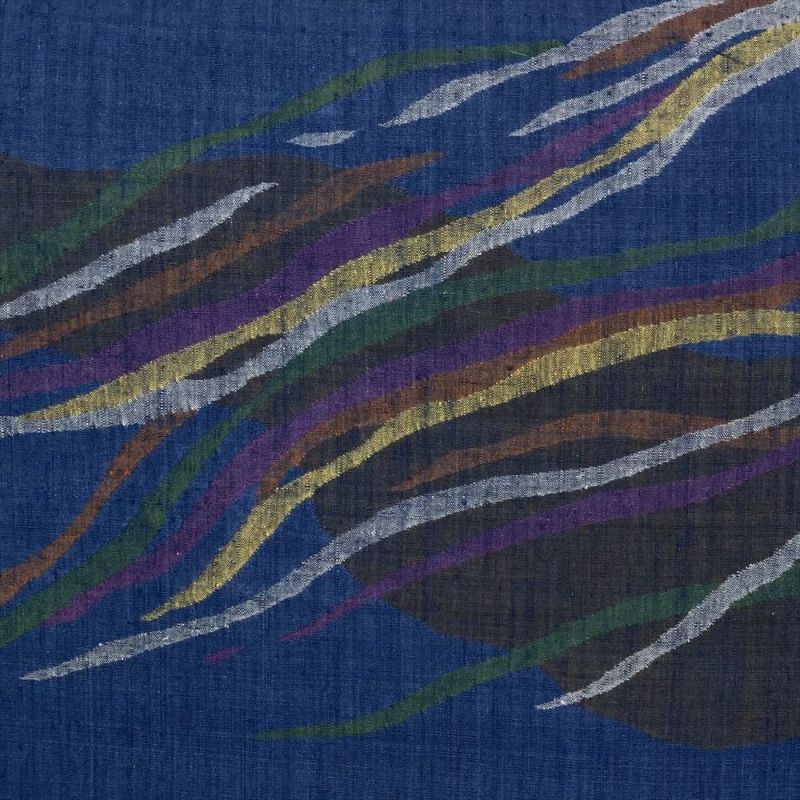 【色柄】青 カジュアル 紬 六通 霞取り 吹き流し