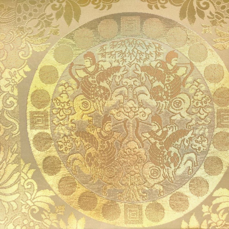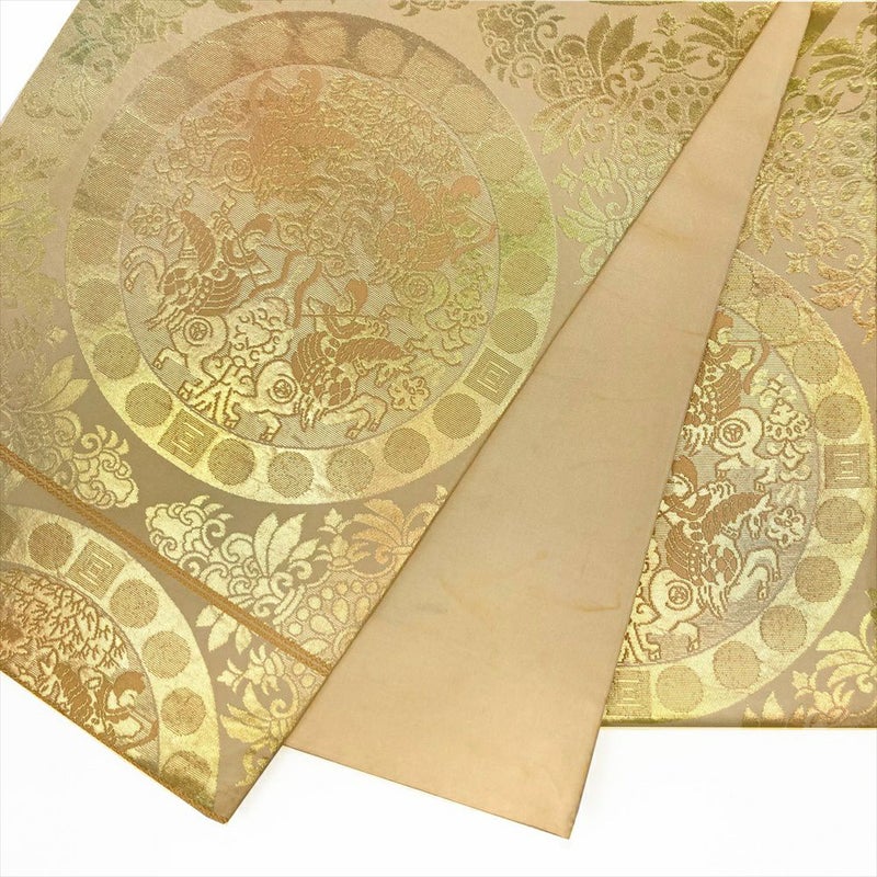 (中古)袋帯 金 生成り フォーマル 切箔 連珠文 オリエンタル