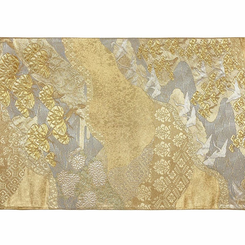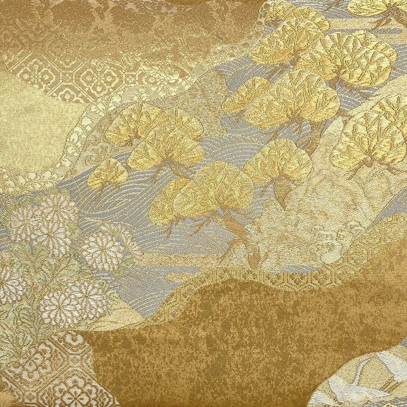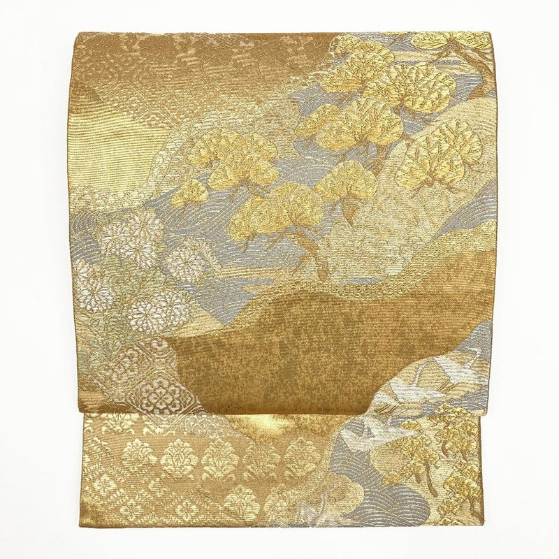 金系の帯は上品な光沢と高級感があります。フォーマルな着物に合わせると華やかさが引き立ち、セミフォーマルな着物に合わせると格調高さをプラスすることができます。若干の使用感がございます。