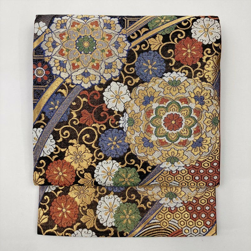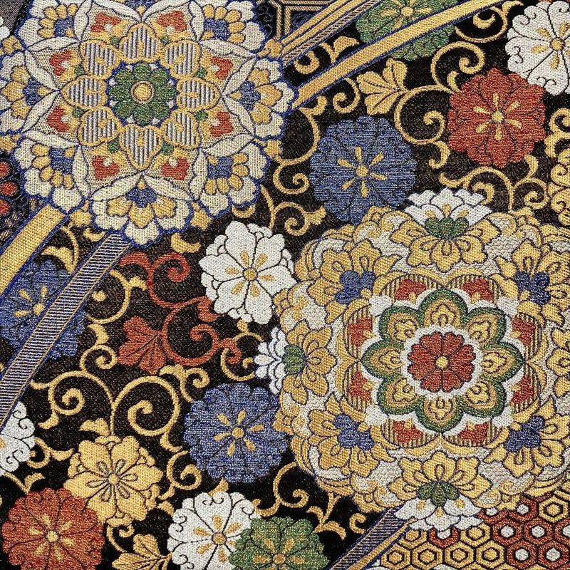 【色柄】黒 金 青 フォーマル 振袖用 六通 金糸 銀糸 華文 花唐草 吉祥文