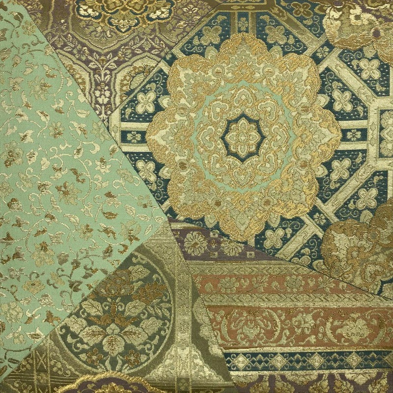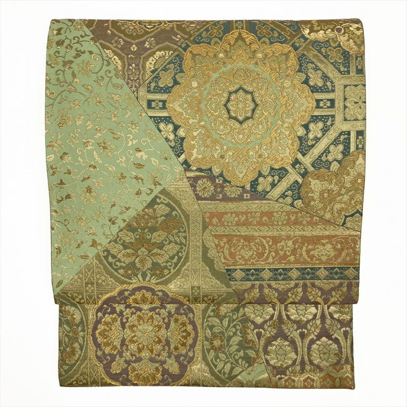 色々な有職文様を切嵌め風に織り上げた豪奢な袋帯です。とてもエキゾチックな印象の帯です。