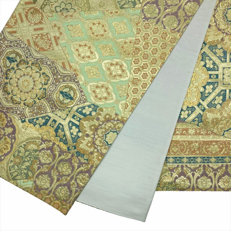 (中古)袋帯 金 紫 浅緑 フォーマル セミフォーマル 六通 切り嵌め 宝華文 有職文様