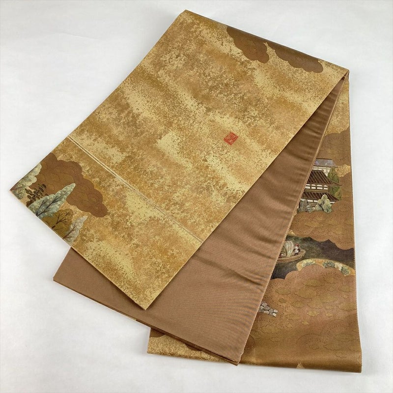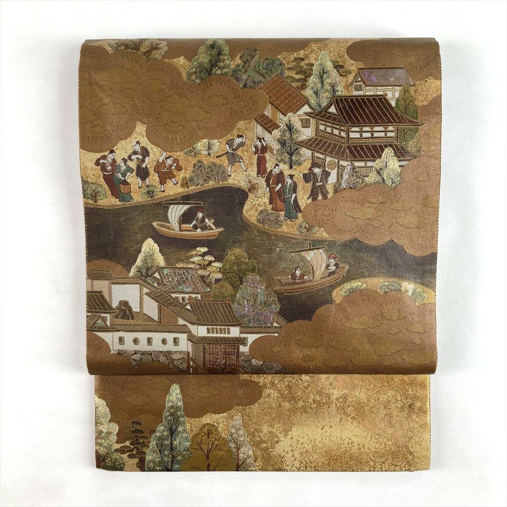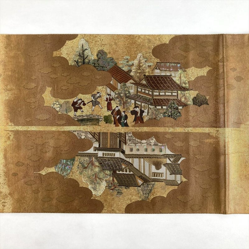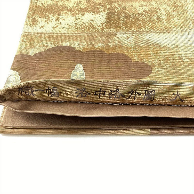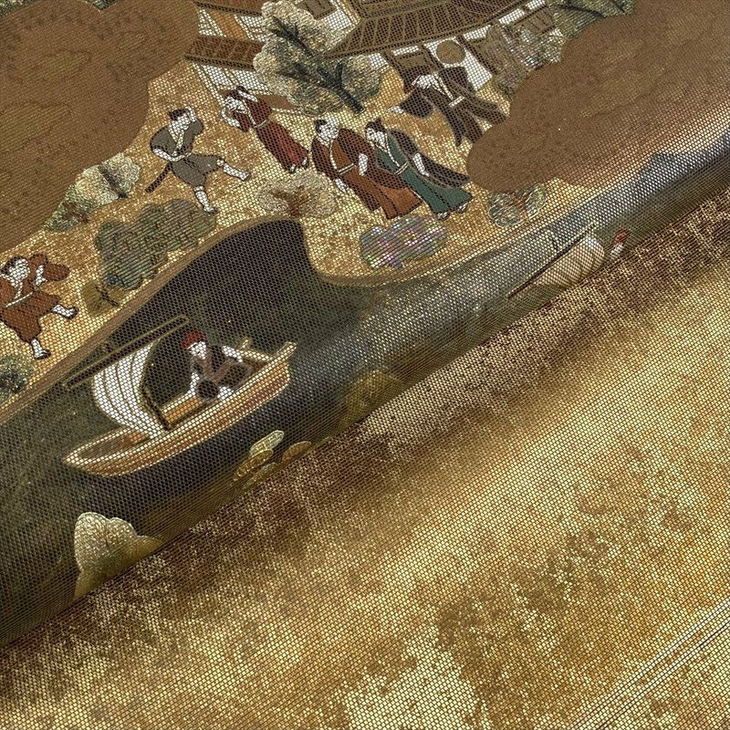 (中古)袋帯 金 フォーマル 六通 螺鈿箔 出島 洛平洛外 絹