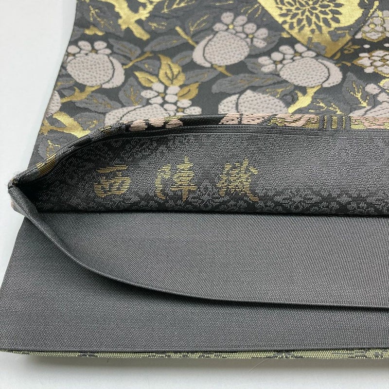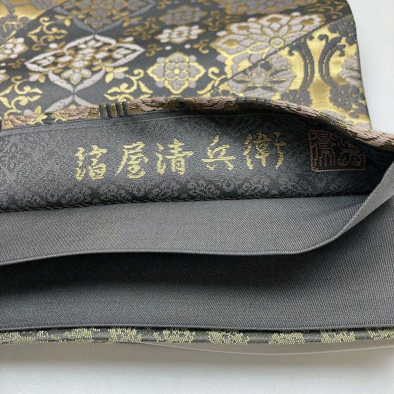 西陣織、箔屋清兵衛の袋帯です。箔屋清兵衛の帯は一般的な西陣織の礼装用帯に比べてお手ごろで購入しやすく、文様にもよりますが、訪問着・付け下げ・色無地と相性がよく、食事会やお茶会、茶席、観劇、入卒業式にピッタリです。若干の使用感がございます。