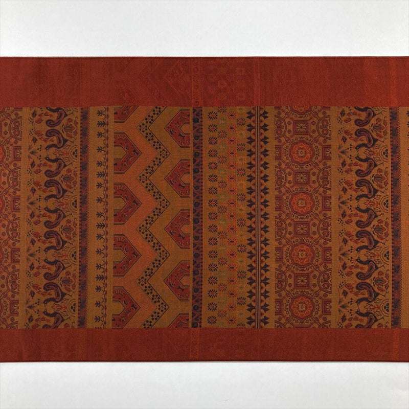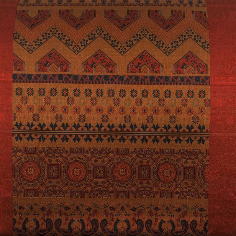 【色柄】赤茶色 黄土色 カジュアル 横段 花鳥 オリエンタル 織り 全通
