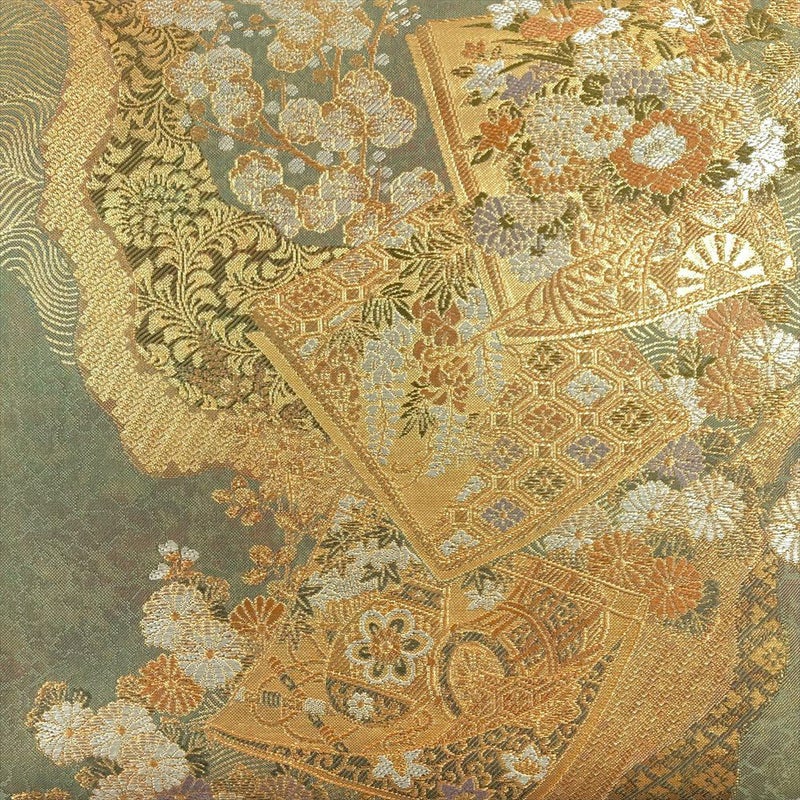 【色柄】灰緑 金 フォーマル セミフォーマル 色紙 花車 和楽器 菱 七宝 蜀江 波 切箔 六通