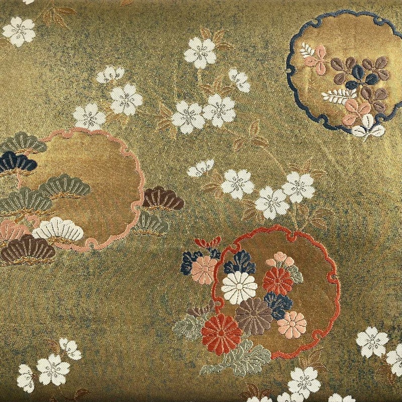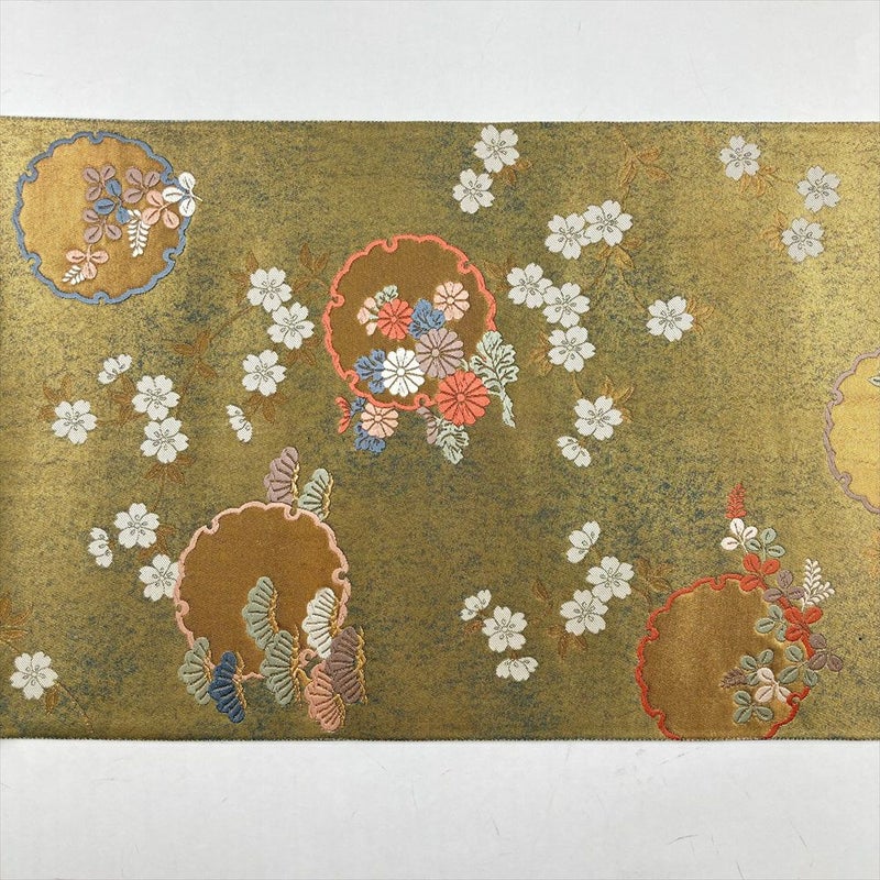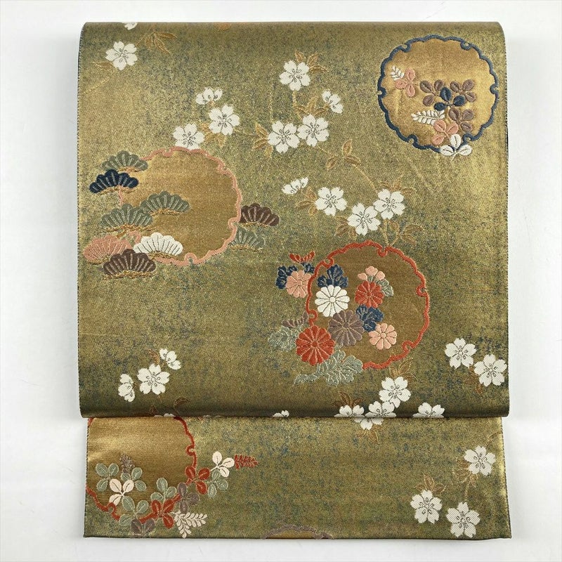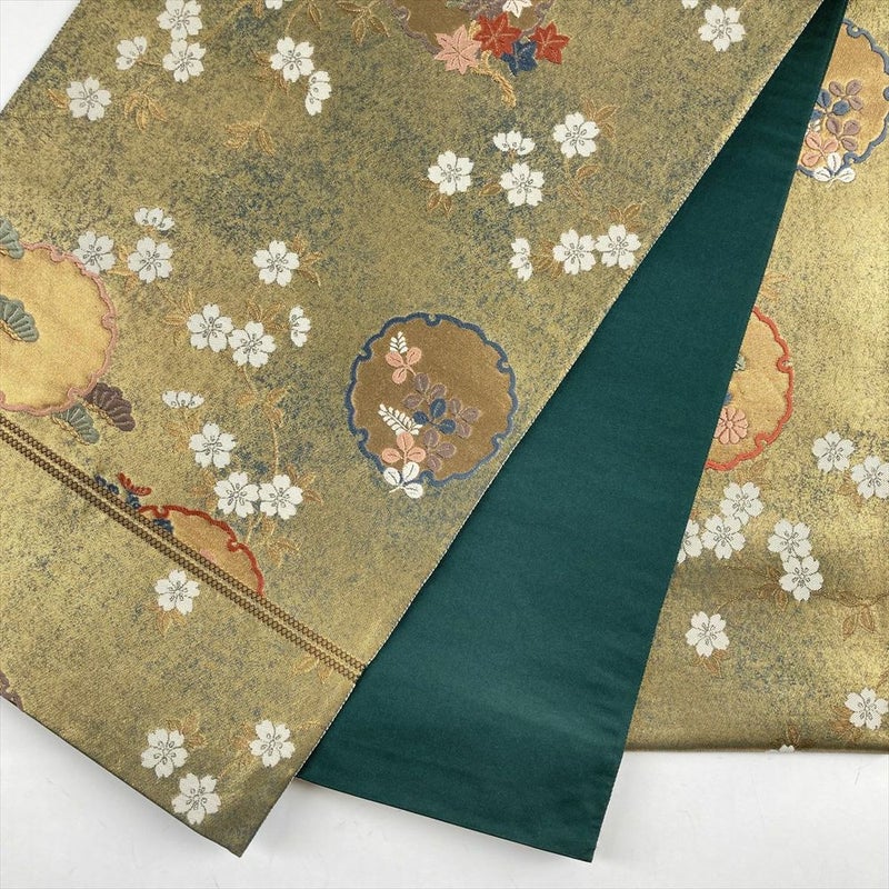 (中古)袋帯 金 フォーマル セミフォーマル 六通 切箔 雪輪 四季の草花