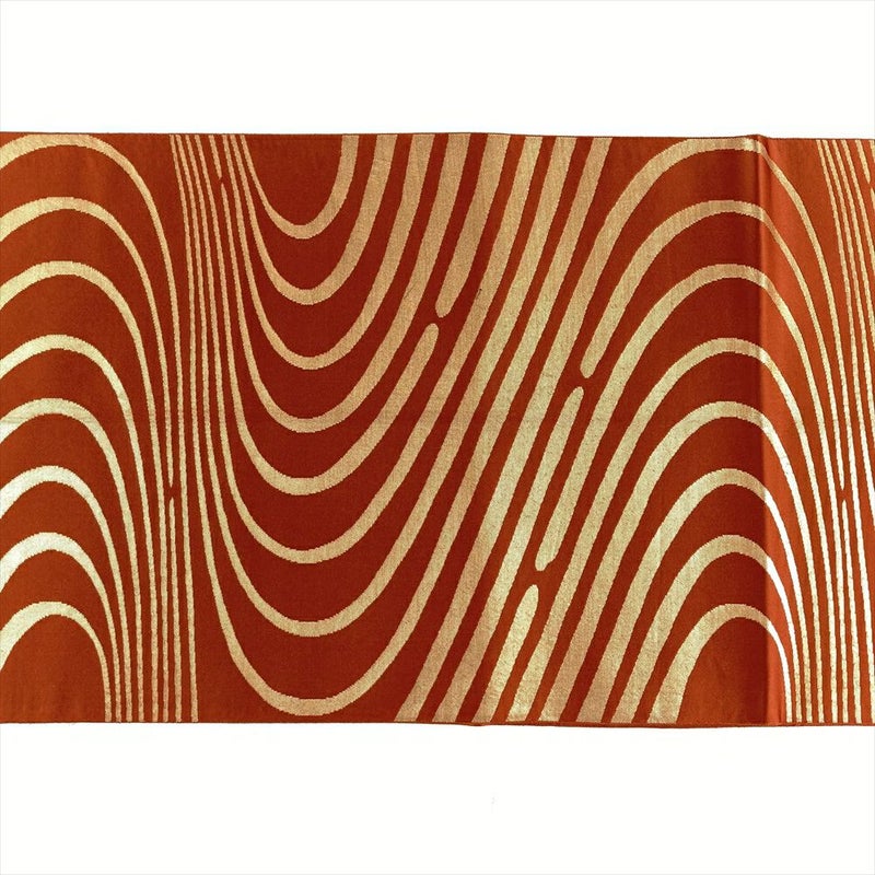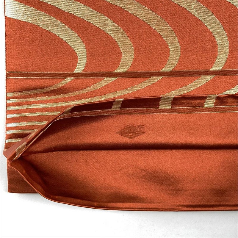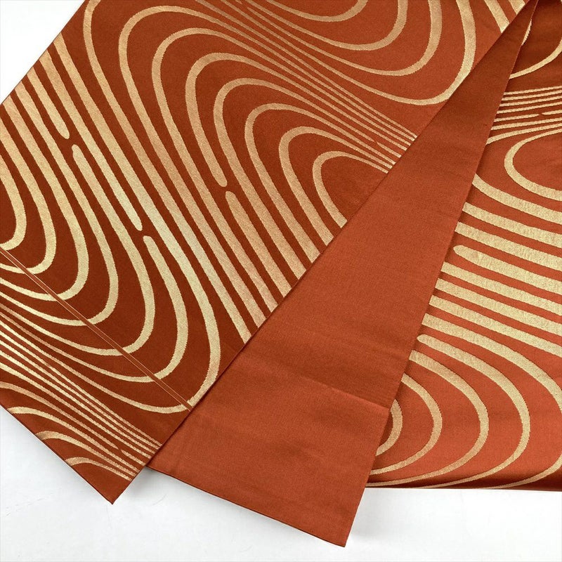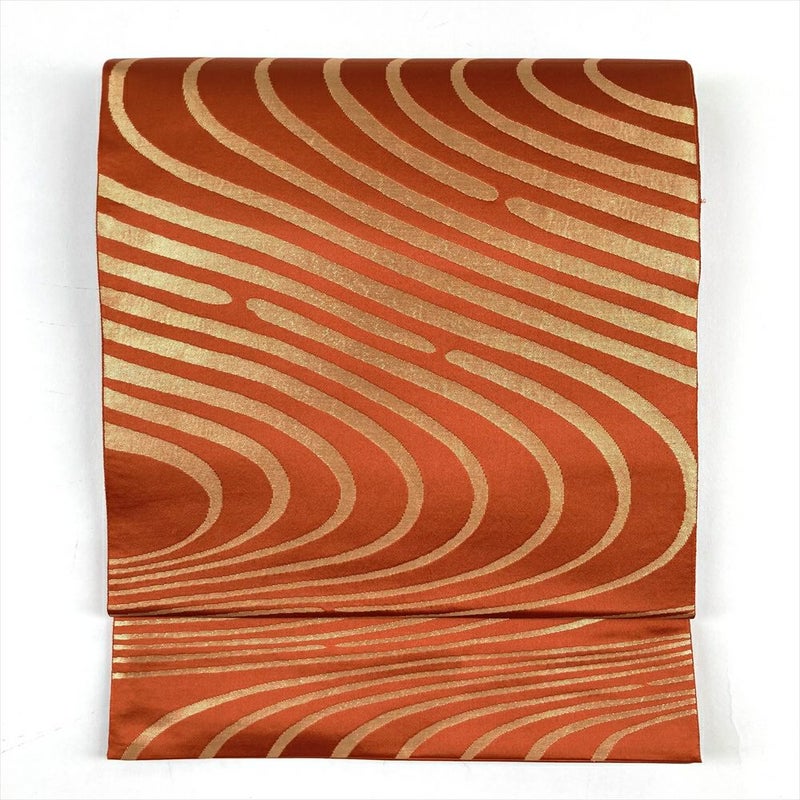 (中古)袋帯 柿色 オレンジ 金 セミフォーマル 六通 切箔 流水