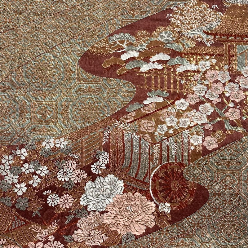 【色柄】赤茶色 フォーマル セミフォーマル 平安絵巻 御所車 霞 吉祥文様 切箔 六通
