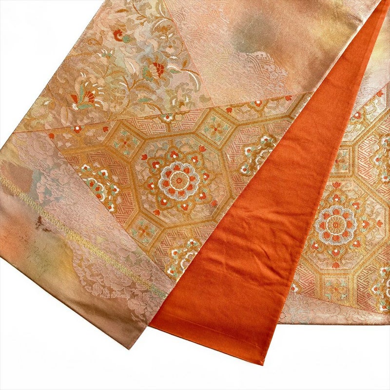 【色柄】金色 ピンク フォーマル 唐花 蜀江華文 波頭 切箔 六通