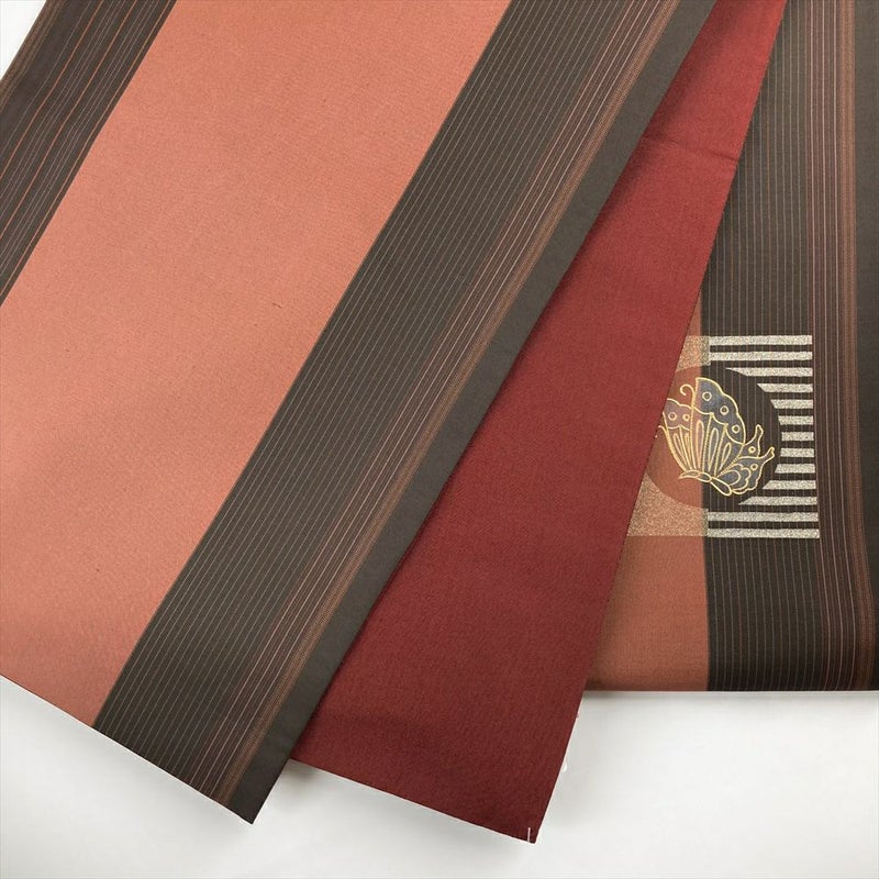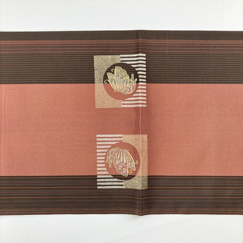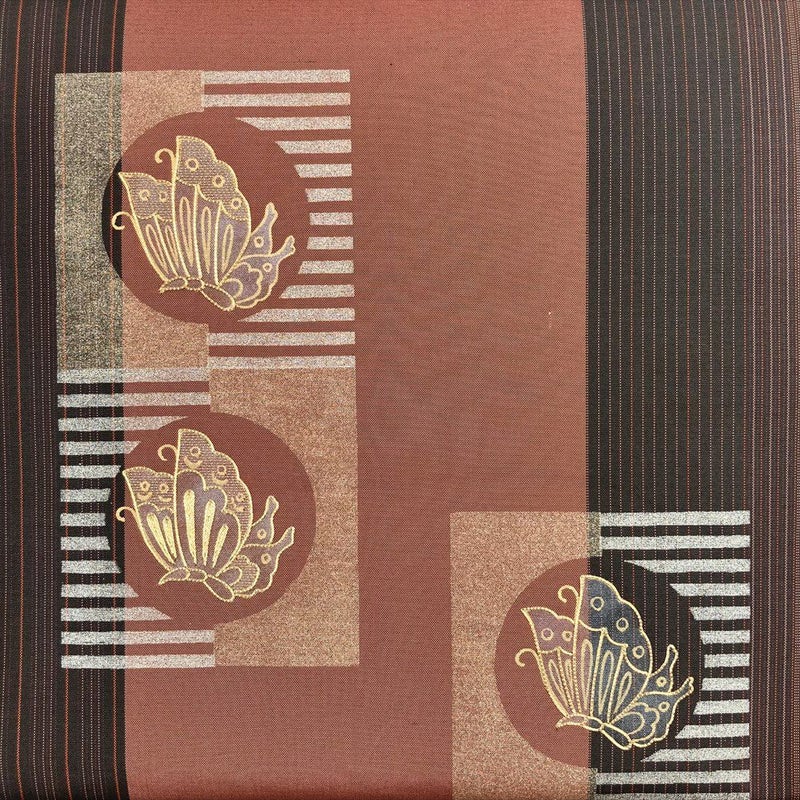 【色柄】薄赤茶色 カジュアル 変わり間道 蝶 織り 金彩 刺繍 六通