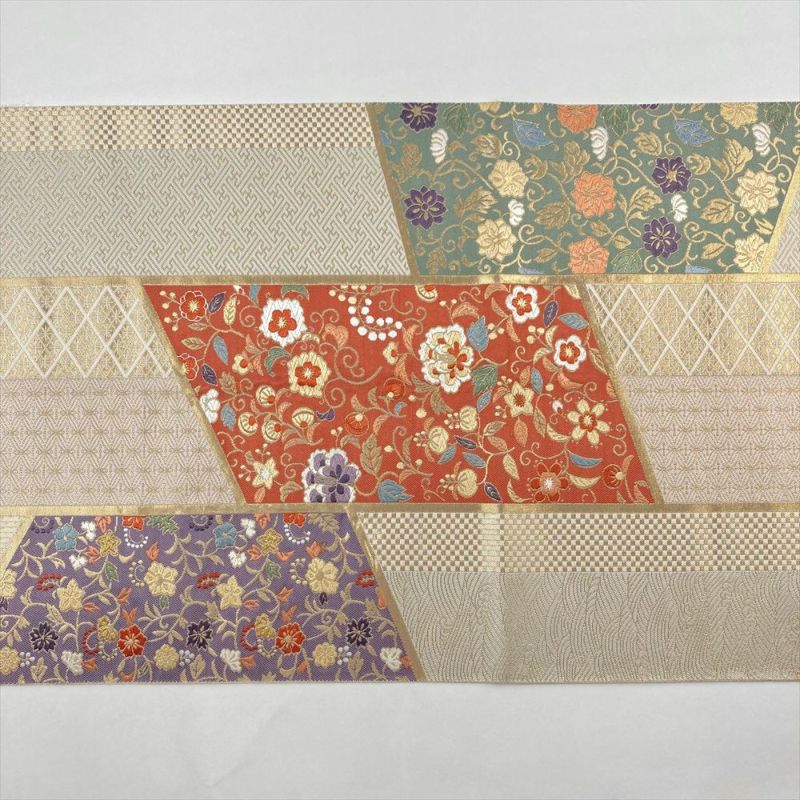彩りが豊かで、さらに金銀の糸や箔を使用した袋帯は、織物の中でも格の高いものです。礼装用(振袖、留袖、訪問着など)に、ふさわしいとされています。選び抜かれた素材と、色、柄、文様に込めた思い、細部まで丁寧に作り込まれた帯は、一生ものの品として、長くご愛用いだたけます。中無地に汚れがございます保存臭がややございます。ほつれがございます。縫い取りあり