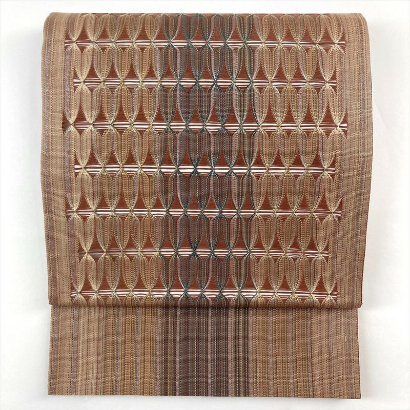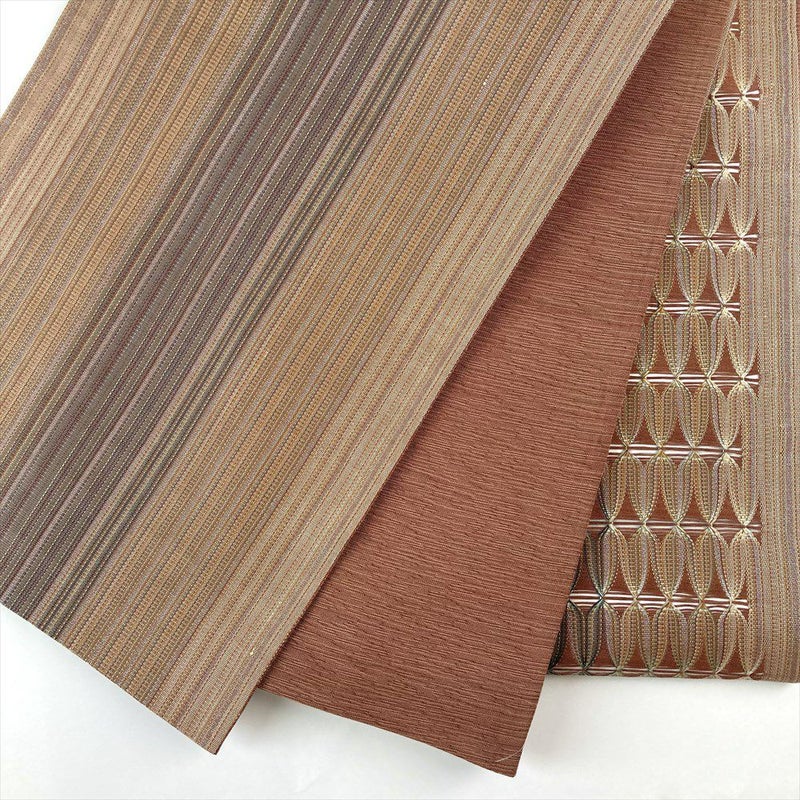 【色柄】薄茶色 カジュアル 縞 組み織り調 織り 銀糸 六通