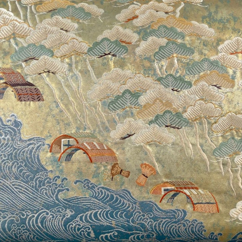 松は、常緑樹なのでどの季節でも青々としています。 そのため、特に決まった季節感がなく通年で着用できる便利な柄です。 また、一年中色褪せず寿命が長い木であることから長寿の象徴とされており、吉祥文様としても定番です。保存臭がややございます。たれ先に縫い取りがございます。