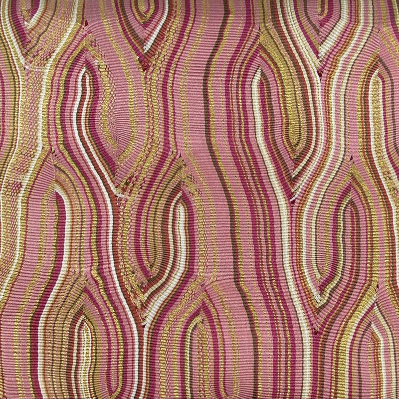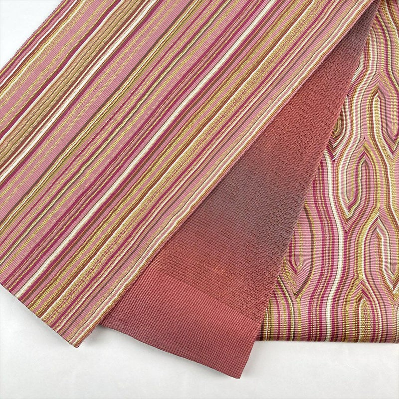 【色柄】桜色 ピンク色 カジュアル 幾何学調 縞 織り 金糸 色糸 六通