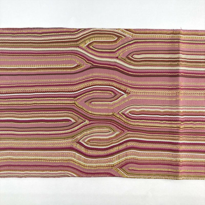 (中古)袋帯 桜色 ピンク色 カジュアル 六通 織り 金糸 色糸 幾何学調 縞